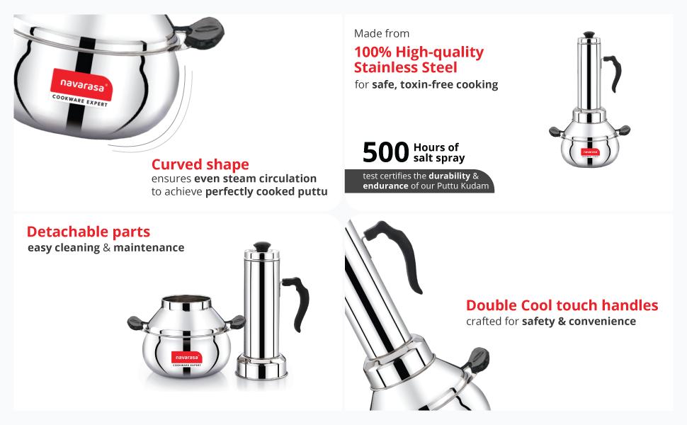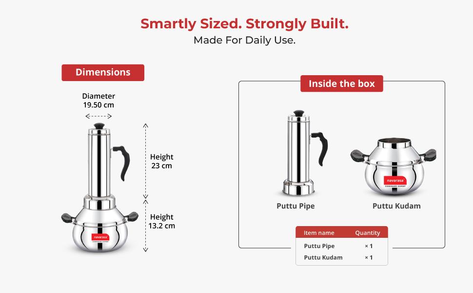 really easy to handle the puttu maker, i was strugle to lift the puttu maker as they don't have the handles. But this one has double handle which makes easy to handle the puttu maker and make the puttu more fast and delicious. Good one.